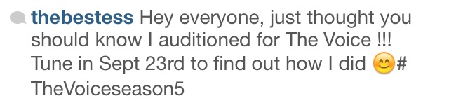 Tessanne The Voice Tweet 2 Share this:Tweet Email a link to a friend (Opens in new window) Email Share on WhatsApp (Opens in new window) WhatsApp Share on Telegram (Opens in new window) Telegram Like Loading...
