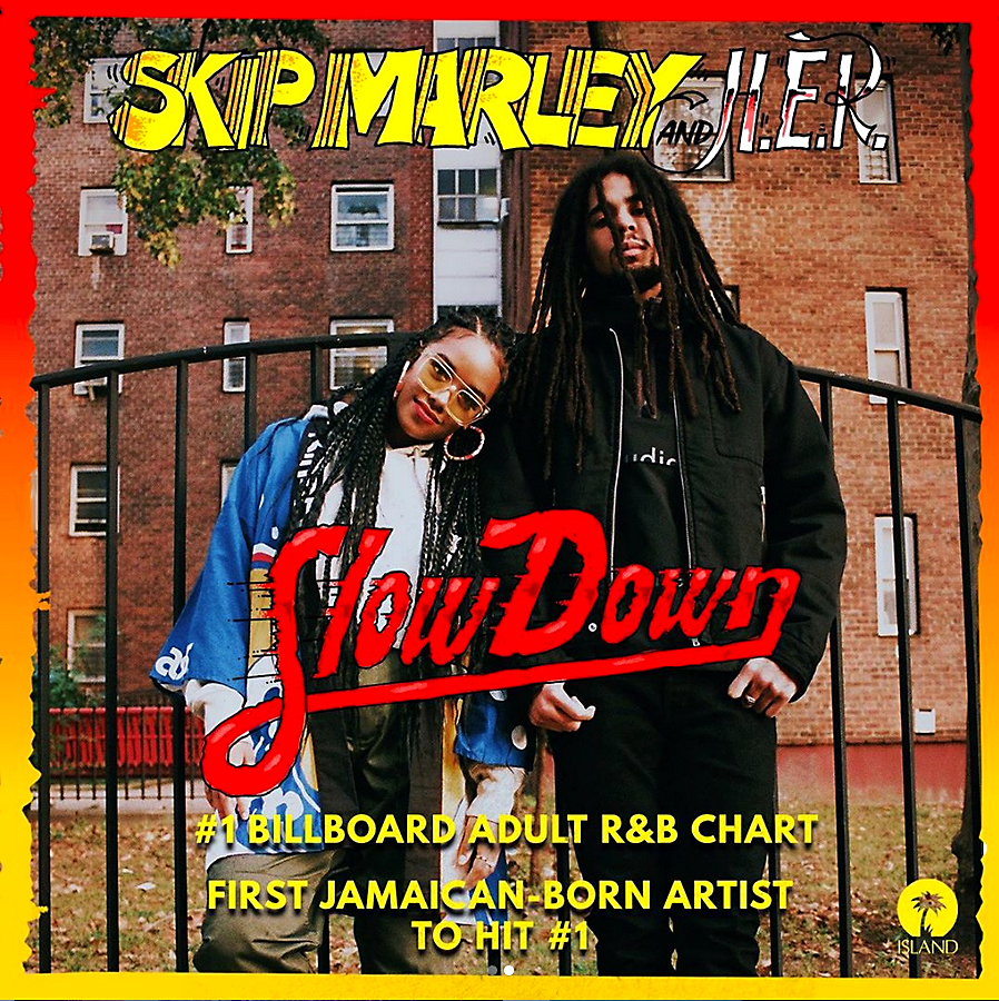 Skip Marley etches his name into the history books with Slow Down – on which he is joined by R&B songbird and two-time Grammy award-winning musician, H.E.R. – by moving to the top of both Billboard Adult R&B and Mediabase Urban adult contemporary charts.